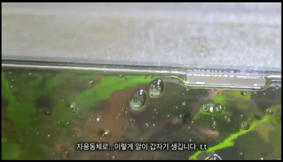 아래처럼 1일 정도 치어격리통에 사료 처리를 위해 잠깐 넣어 두었는데 T.T 알이 ..ㄷㄷㄷ